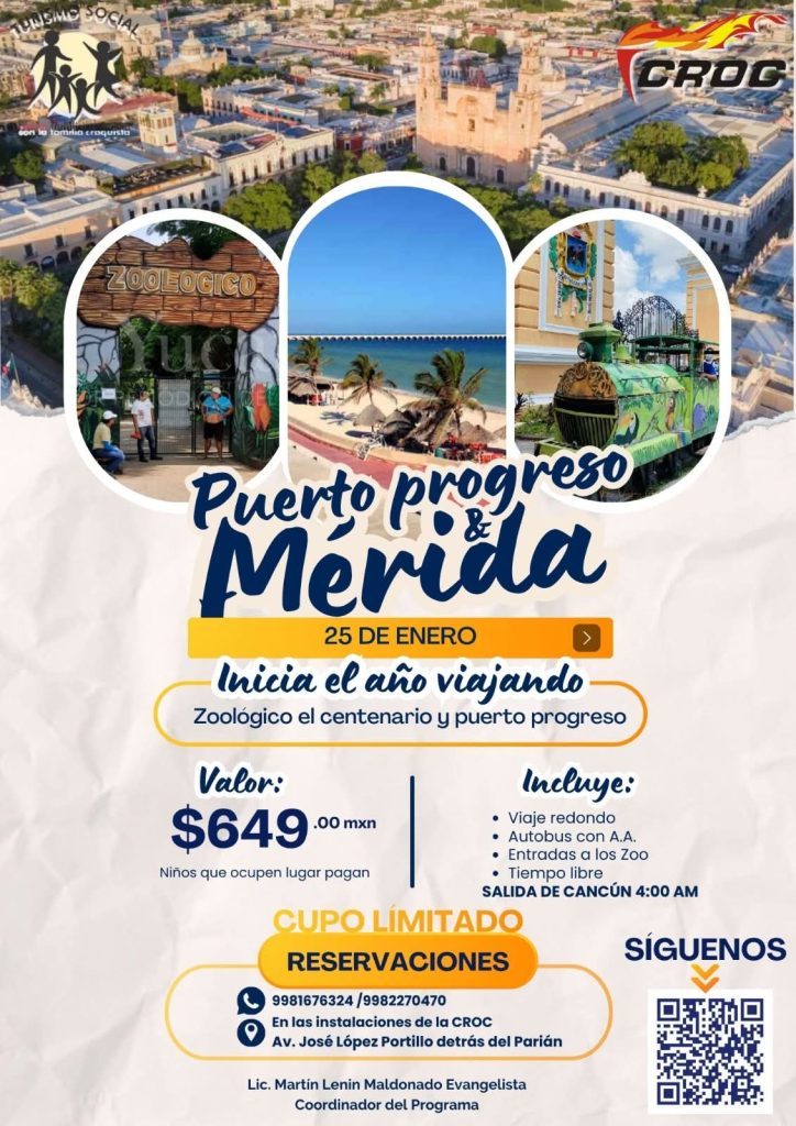Bajo la iniciativa de nuestro líder nacional, Isaías González Cuevas, de promover el sano esparcimiento y la convivencia familiar, te invitamos a nuestro próximo viaje de Turismo Social a Puerto Progreso y Mérida.